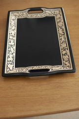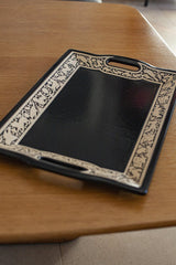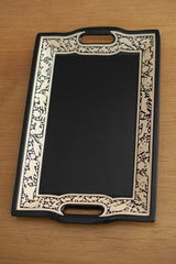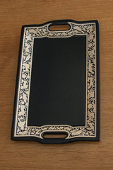 Technique: Handmade engraved lacquered platter in "rayado" technique from Olinalá. The "rayado" technique, meaning scratched, has its name from the use of an agave thorn or quill (usually goose feather) to etch the designs. A first coat is applied to the wooden piece then dried completely. A second coat is then applied and while still wet, this layer is removed in places to reveal the first color and create lace-like designs.