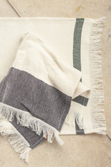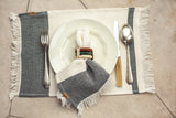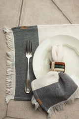 Set of 2 placemats and napkins with fringes. It is made from foot pedal loom weave and it is hand knotted finished.