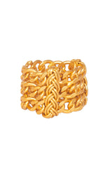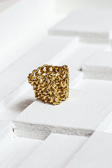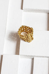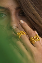 One of the biggest trends of the season is stacking up rings and the Stardust collection offers a variety of diverse ring designs to play with them creating unique combinations. Take the Vogue ring as your base ring and incorporate other designs from the Stardust collection to the mix or even use two of the same design together, the options are endless. The Vogue ring is a handmade piece made from 24kt gold-plated brass with braids.
