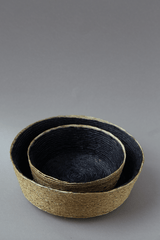 A true timeless classic, between natural palm and discreet metallic tint. Theses baskets are made from fibres extracted from Palms. All handmade and dyed by hand, pieces take hours to be produced.