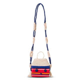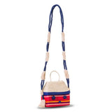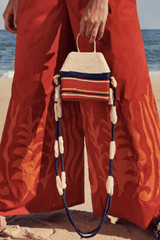 Like a box into which you keep your most precious possessions, this natural straw rectangle topped with a bright pink frme lines on the cover hangs perfectly at the end of a leather strap. The handbag is handmade from brushed straw is an exclusive bag made from fibres extracted from Peruvian coasts. All pieces take approximately 10 hours to be produced. Handmade and dyed by hand.